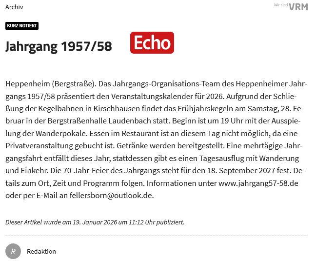 Koordinator des Heppenheimer Jahrgangs 1957/58